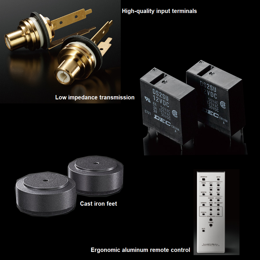 Luxman’s New LECUA1000 88-step, electronically controlled attenuator is integrated into the amplifier circuit minimizing sound quality degradation over the full range of volume control. The output section of the preamplifier is equipped with discrete buffer circuitry that confidently drives the subsequent power amplifier stage.